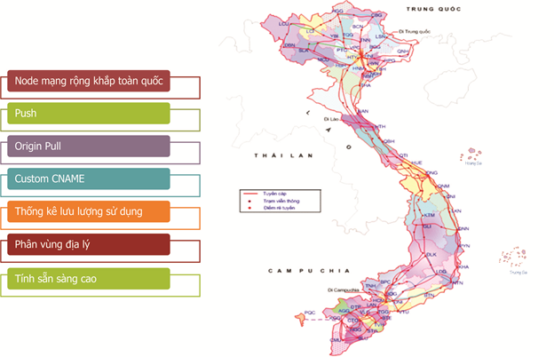 Dịch vụ vCDN bao gồm mạng lưới gồm nhiều máy chủ lưu trữ đặt tại nhiều vị trí địa lý khác nhau, cùng làm việc chung để phân phối nội dung, truyền tải hình ảnh, CSS, Javascript, Video clip, Real-time media streaming, File download, timeshift đến người dùng cuối. Cơ chế hoạt động của vCDN giúp cho khách hàng truy cập nhanh vào dữ liệu máy chủ web gần họ nhất thay vì phải truy cập vào dữ liệu máy chủ web tại trung tâm dữ liệu.