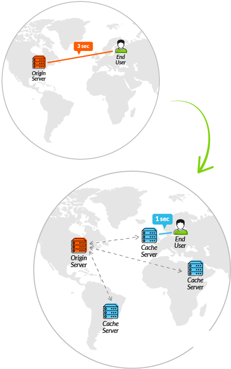 Giả sử như máy chủ website bạn ở Châu Âu nhưng khi một người dùng ở Việt Nam truy cập vào website của bạn. Lúc này, dữ liệu sẽ phải đi qua nhiều lãnh thổ khác nhau để đến đích. Vì vậy, người dùng ở Việt Nam sẽ phải mất một khoảng thời gian khá lâu để nội dung được hiển thị. Thông thường, khách truy cập website sẽ bỏ đi nếu thời gian tải trang lớn hơn 2s.