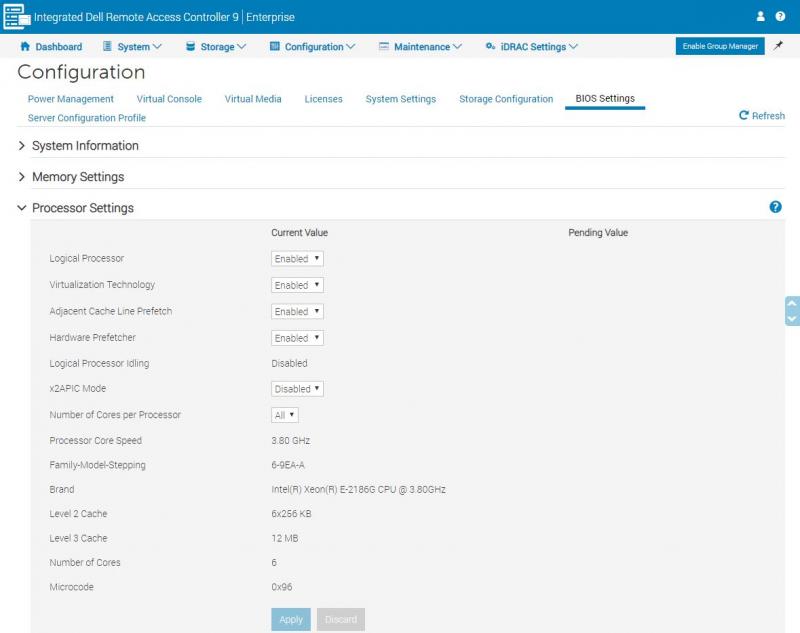 Một tính năng nổi bật mà chúng tôi muốn hiển thị là trang cấu hình BIOS. Người ta có thể thực hiện thay đổi BIOS thông qua giao diện người dùng web, điều này thật đáng giá. Nếu bạn (hoặc quản trị viên CNTT của bạn) đã từng phải thực hiện thay đổi BIOS bằng phương pháp cũ, thì đây là một lợi ích rất lớn. Sử dụng iKVM là một nâng cấp lớn cho quy trình nhưng nó vẫn còn khó khăn. Quản trị viên sẽ khởi động lại hệ thống từ xa và tấn công dữ dội vào DEL, F2 hoặc các tổ hợp phím khác để đảm bảo họ đưa nó vào BIOS. Từ đó, một số thiết lập BIOS 2018 kém tiên tiến hơn vẫn trông giống như các nhà thiết kế UI của họ đã thần tượng hóa các chương trình DOS đầu những năm 1990. Một số thiết lập BIOS nâng cao hơn trông giống các chương trình thời đại Windows 2000. Bằng cách cấu hình BIOS bằng iDRAC, người ta có thể sử dụng giao diện người dùng hiện đại và tránh quá trình khó chịu đó.