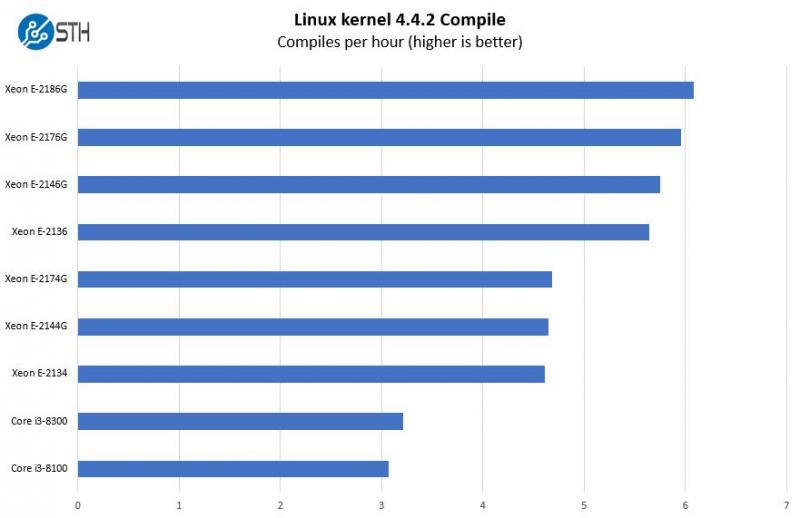 Đây là một trong những điểm chuẩn được sử dụng nhiều trong vài năm qua. Nhiệm vụ rất đơn giản, chúng tôi có một tệp cấu hình tiêu chuẩn, kernel Linux 4.4.2 từ kernel.org và tạo cấu hình tự động tạo tiêu chuẩn sử dụng mọi luồng trong hệ thống. Chúng tôi đang thể hiện kết quả về mặt biên dịch mỗi giờ để làm cho kết quả dễ đọc hơn: