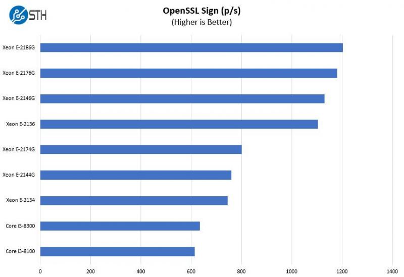 OpenSSL là một công nghệ cơ bản của cơ sở hạ tầng hiện đại. Trên cấu hình PowerEdge R340, Intel Xeon E-2146G có giá thấp hơn một vài đô la so với Intel Xeon E-2174G . Trong các bài đánh giá CPU của chúng tôi, chúng tôi gọi Intel Xeon E-2146G là lựa chọn hàng đầu của chúng tôi vì giá trị to lớn mà nó đại diện.