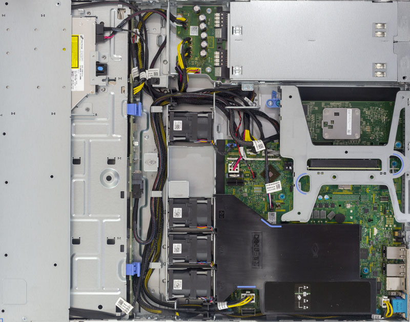 Bên trong khung máy, chúng tôi có bố trí máy chủ 1U tiêu chuẩn. Người ta có thể thấy lưu trữ ở phía trước, phân vùng quạt ở giữa và bo mạch chủ và PSU ở phía sau hệ thống.