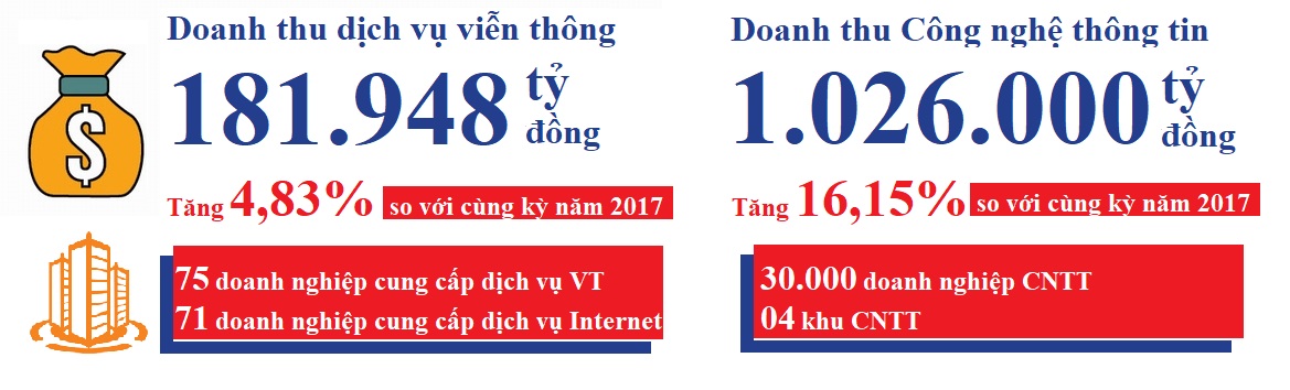 Hạ tầng viễn thông tiếp tục được các doanh nghiệp chú trọng đầu tư tới vùng sâu, vùng xa. 6 tháng đầu năm 2018, các doanh nghiệp viễn thông đã phát triển thêm được 22.665 trạm BTS, 19.865 km cáp quang, với tỷ lệ phủ sóng di động đạt 95% diện tích cả nước, tỷ lệ người sử dụng internet là 59,37% dân số. Đặc biệt, các doanh nghiệp đã triển khai mạng di động 4G đến tất cả các khu vực trên địa bàn; các dịch vụ viễn thông, truyền hình cáp phát triển với nhiều chính sách ưu đãi hướng đến nhu cầu sử dụng thiết thực của khách hàng và phục vụ an sinh xã hội.