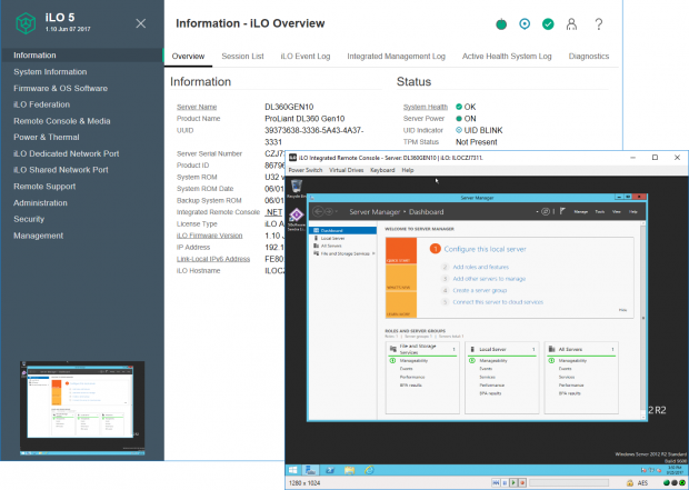 Có thể sử dụng ứng dụng ILO Mobile iOS của HPE trên Smartphone để truy cập từ xa vào máy chủ và được trình bày với cùng giao diện chi tiết như được cung cấp bởi trình duyệt web. Thật dễ dàng để thêm máy chủ; chúng tôi đã sử dụng bộ tạo mã QR miễn phí được trang bị địa chỉ và thông tin của máy chủ và quét từ ứng dụng.