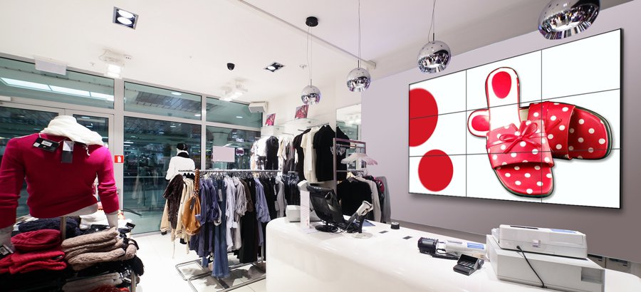 1. Cửa hàng, showroom của các thương hiệu trang sức, thời trang: các màn hình quảng cáo, màn hình ghép videowall, chạy các nội dung hình ảnh, video sinh động trong cửa hàng với hàng loạt hình ảnh, chương trình quảng cáo, thu hút và lôi kéo khách hàng…